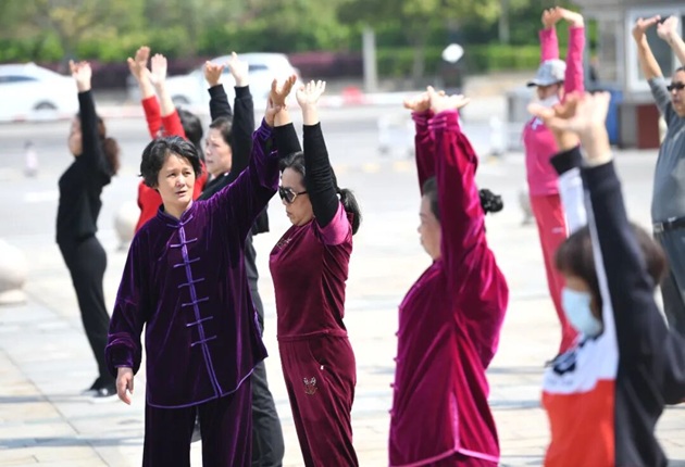 湖南省文化馆老年大学,志愿者在教学员练习太极拳基本动作。 湖南日报全媒体记者 田超 摄
